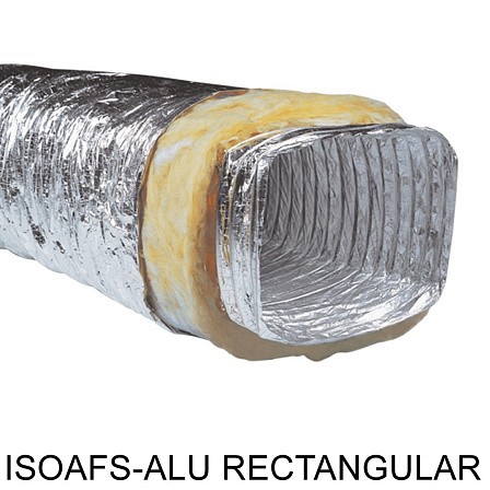 ISOAFS-ALU RECTANGULAR представляют собой теплоизолированные гибкие воздуховоды алюминиевые прямоугольные, выполненные из нескольких слоев алюминия и полиэстера, изолированные стекловолокном и алюминиевым паронепроницаемым слоем, а также усилены жестким стальным каркасом из проволоки.