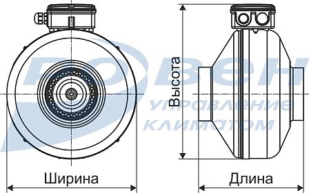 Габаритные и присоединительные размеры вентиляторов канальных серии VC-200 (мм)
