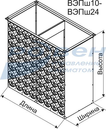 ВЭПш - панель воздухораспределительная с односторонней подачей воздуха для напольной установки в рабочей зоне и потолочной установки с вертикальным подводом воздуха через воздуховод прямоугольного сечения.