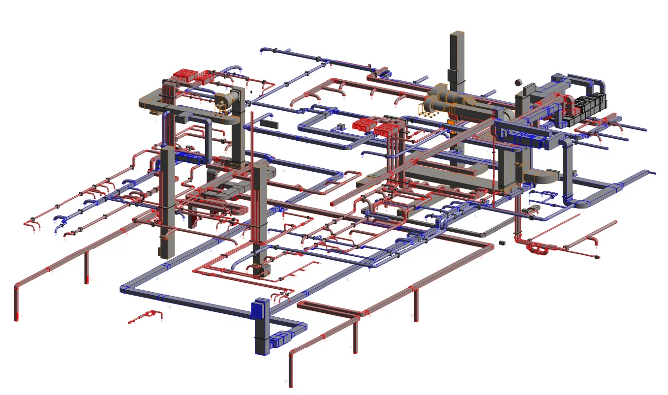Семейство имеет зону обслуживания (Красная геометрия). Эта зона необходима для понимания пространства для обслуживания агрегата после монтажа. И технологическую зону (Голубая геометрия) эта зона необходима для понимания пространства для монтажа оборудования.